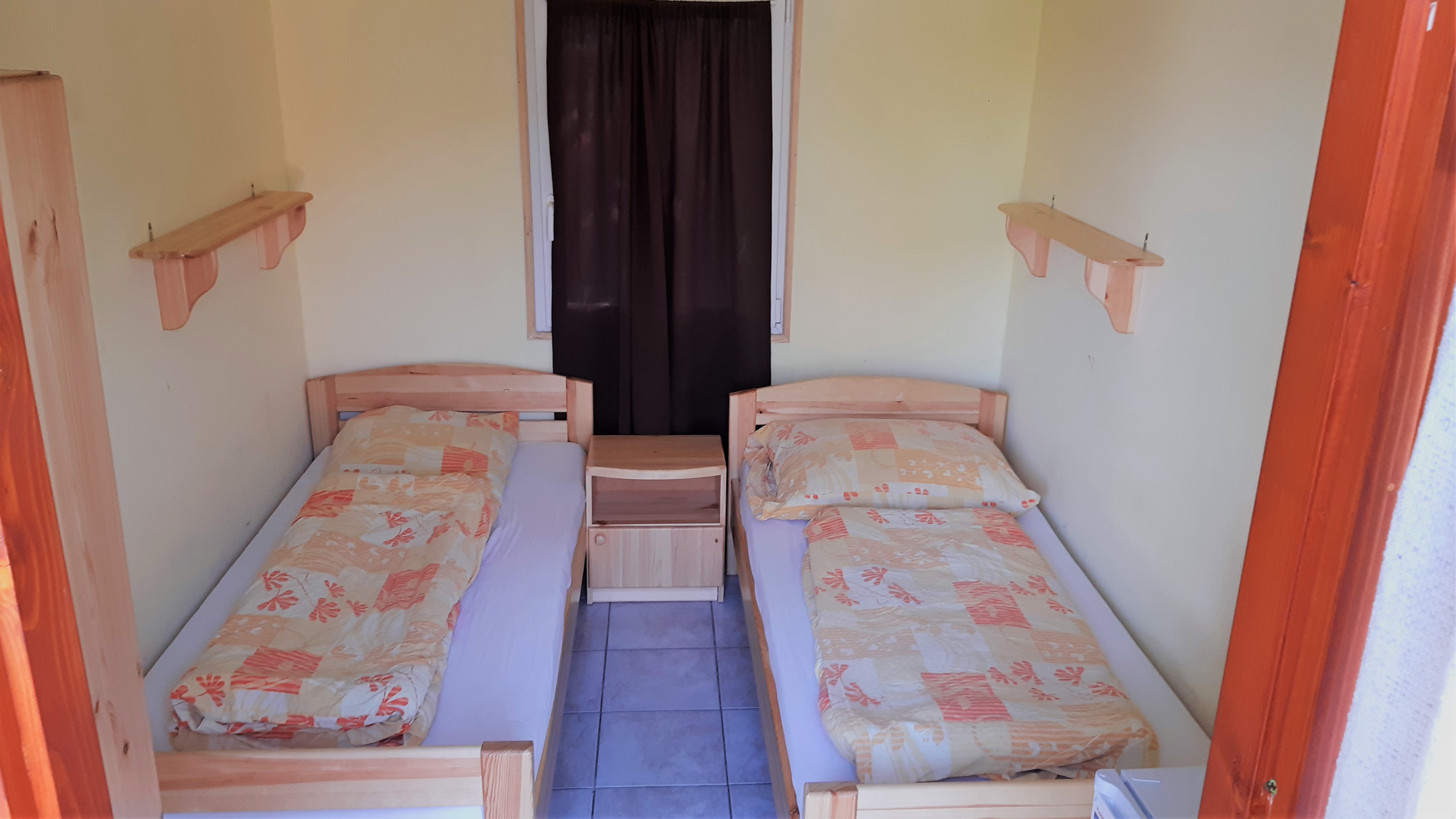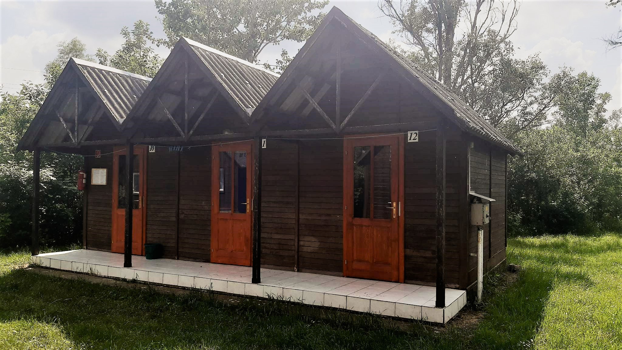 A kemping területén található faházak a fürdő szomszédságában helyezkednek el. Az 5 különálló faház 15 hálóhelyiséggel, 46 férőhelyet biztosít. 4 férőhelyes (emeletes ágy) és 2 férőhelyes szobák közül lehet választani.
