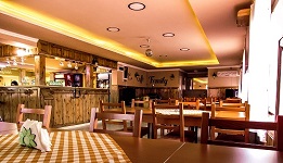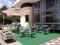 Városközponthoz közel, étterem és különálló büférész, mindkét helyen kis bárpulttal, közös kerthelyiséggel.